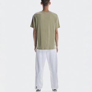 Care Instructions Cold machine wash Cool iron Do not bleach Do not dry clean Do not tumble dry Materials & Transparency Materials Main Fabric: Cotton 65%, Polyester (recycled) 28%, Elastane 7%. Other Fabric: Polyester (recycled) 88%, Elastane 12%. The soft-fabric tee made for low intensity studio workouts and your recovery time after class.