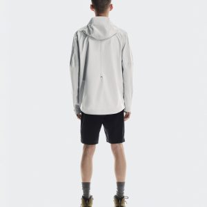 Care Instructions Cold gentle machine wash Do not bleach Do not dry clean Do not iron May be tumble dried cold Materials & Transparency Materials Main Fabric: 85% Recycled Polyamide, 15% Elastane Hood: 100% Polyamide The light and packable midlayer made for trail running, complete with optional hood and watch window.