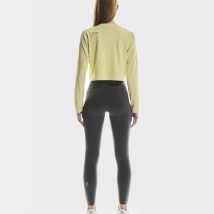 Materials & Transparency Materials Main Fabric: 100% Polyester Rib: 95% Polyester, 5% Elastane The long-sleeved, cropped tee for high-intensity training sessions. Super soft, sweat wicking and designed to move.