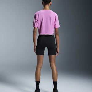Care Instructions Cold gentle machine wash Cool iron Do not bleach Do not dry clean May be tumble dried cold Materials & Transparency Materials Main Fabric: Polyester (recycled) 100%. Rib: Polyester (recycled) 100%. Your go-to cropped T for high-intensity workouts. Made with DryTec™– a breathable, moisture-wicking, quick-drying fabric.